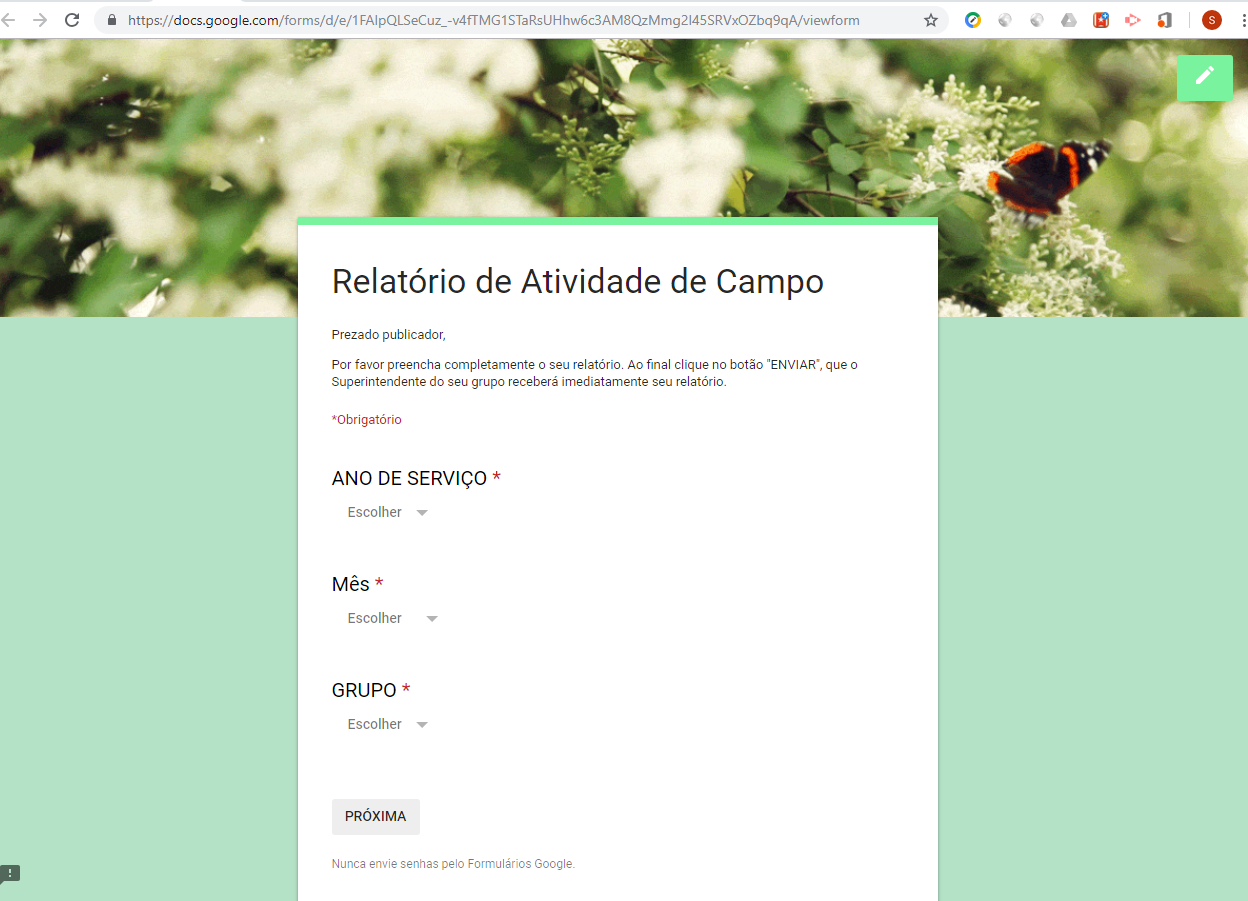 Através de um link de formulário online criado com Google Forms os irmãos enviam o relatório de campo.